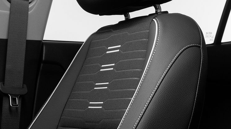 Sæderne er også unikke for den nye variant, trimmet i en kombination af sort stof og syntetisk læder med hvide kontrastsømme. Føreren mødes også med et nyt D-formet rat i perforeret læder med GT Line logo og kontrastsøm samt et 4,2" digitalt display mellem knapperne i instrumentenheden.