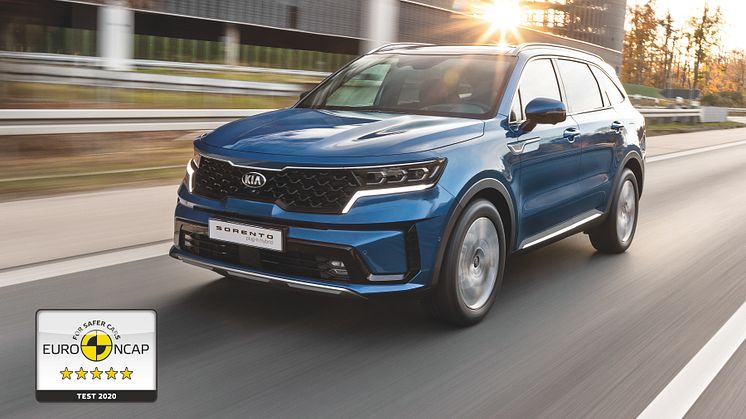 Fredericia, den 9. december 2020 – Den nye KIA Sorento SUV har fået den højest mulige rating i Euro NCAP-sikkerhedstesten. Hele Sorento-modelprogrammet inklusive den kommende Plug-in Hybrid opnåede de maksimale fem stjerner i sikkerhedstesten hos Europas førende uafhængige testorganisation.