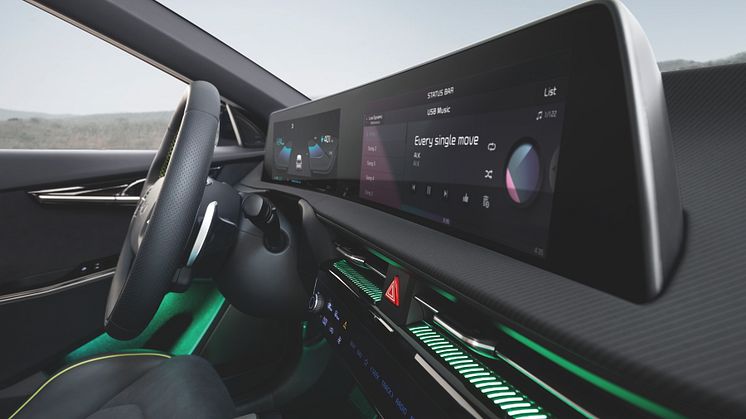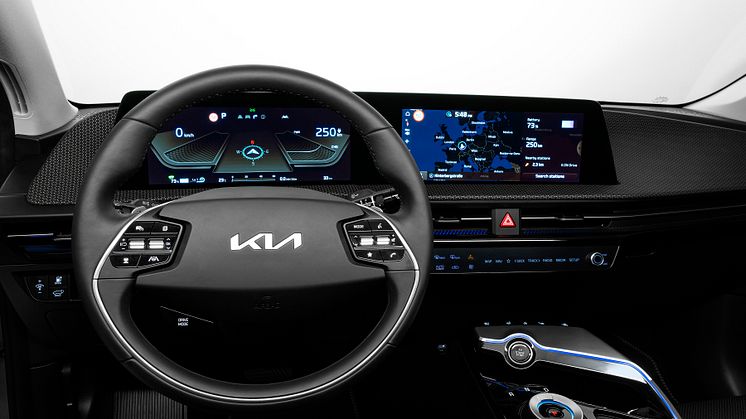 EV6 er baseret på den modulære E-GMP-platform, der giver mulighed for et fladt kabinegulv og kan prale af markedsledende pladsforhold i sit segment. Kabinen fremkalder en behagelig rumfornemmelse og leverer en afslappende, stressfri oplevelse for alle passagerer. To buede 12,3” touchskærme omgiver føreren, hvilket giver nem adgang til vigtige køreinformationer på et øjeblik. Den ene skærm, placeret lige foran føreren, fungerer som instrumenteringen, der kan tilpasses til den enkelte fører. Den viser information såsom hastighed, resterende rækkevidde og ladetilstand. Tilstødende er en central skærm, der kombinerer navigations-, infotainment- og menusystemerne. Disse skærme er parret sammen i en helt glat kurve, hvilket skaber en panoramisk fornemmelse, der giver en fordybende og let tilgængelig funktionalitet under alle kørselsforhold. Skærmene er produceret i kemisk forstærket glas for et mere skarpt billede og en ekstraordinær robusthed.