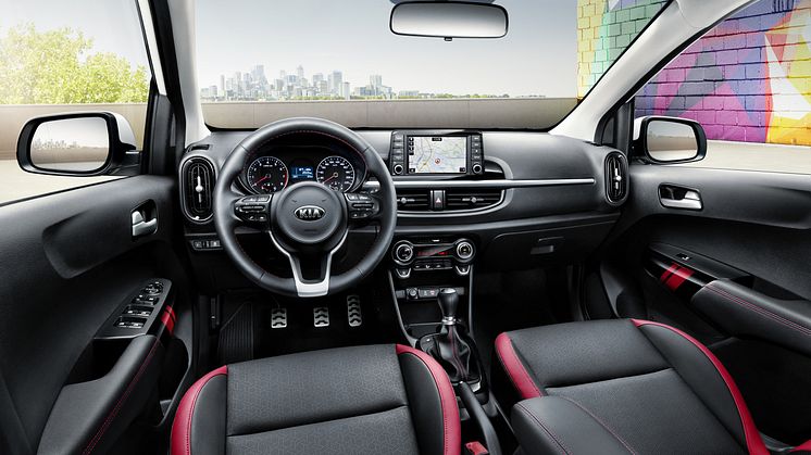 Indvendigt understreges Picantos høje niveau af hightech-komfort, funktionalitet og sikkerhedsudstyr af et moderne og raffineret kabinedesign. Den centrale del i kabinen er et nyt infotainmentsystem med en ny ”flydende” touchscreen, så personerne i bilen har adgang til det nyeste indenfor teknologi i biler. Picanto giver stort potentiale for kundernes individualisering af bilerne, da de kan vælge mellem en række forskellige farver til interiør og indtræk.