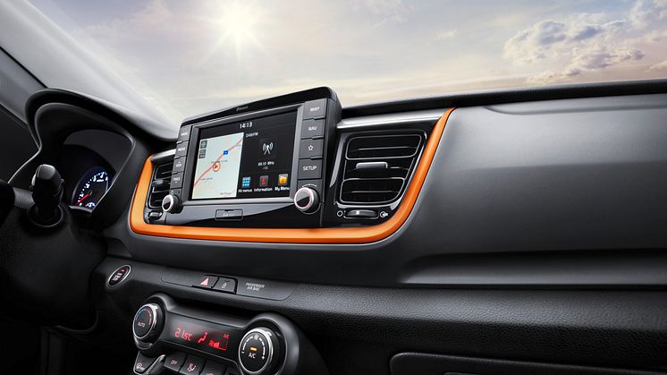 I Stonics europæisk designede kabine er teknologien og ergonomien i højsædet, og køberne har lige så mange muligheder for at individualisere kabinen som bilens eksteriør med en lang række sprælske farvepakker. Den er en af de mest gennemtænkte biler i klassen og kunderne får en lang række nye undervogns-og infotainmentteknologier, der øger sikkerheden, komforten og bekvemmeligheden. Bilen får Apple CarPlay™ og Android Auto™ som standardudstyr, så smartphonefunktionerne nemt kan anvendes via infotainmentsystemets touchscreen. Som alle andre KIA modeller er den tilgængelig med en lang række teknologier, der øger komforten og bekvemmeligheden – fx opvarmede forsæder, fartpilot og nøglefri betjening.